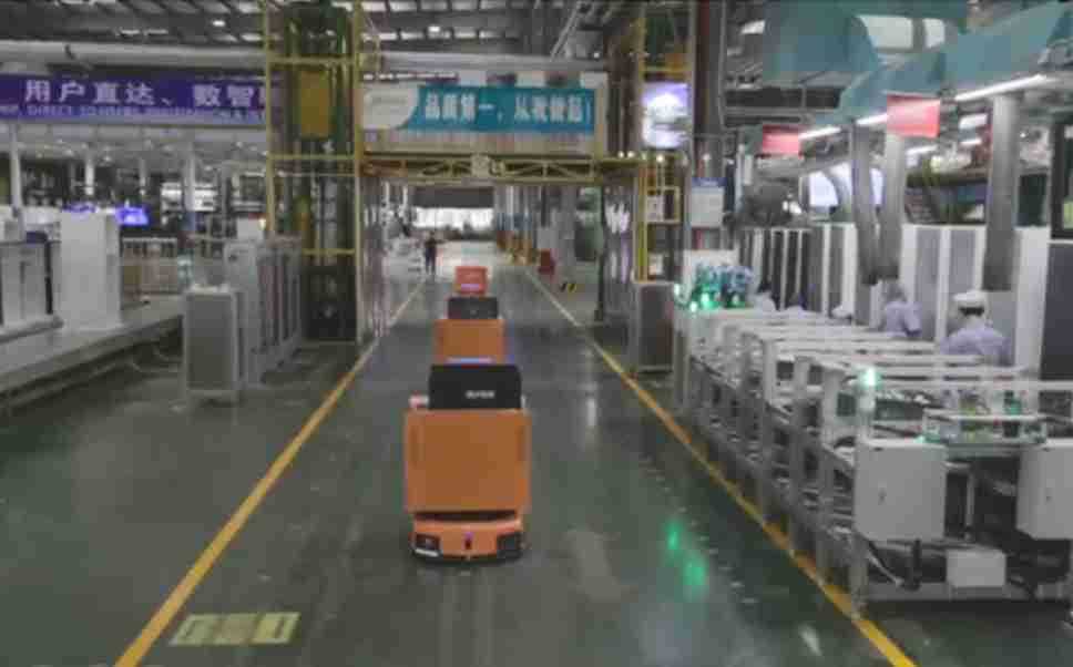为车载冰箱物流配送打造的智能解决方案,,包含产中物流通过潜伏举升AMR搬运至线边,,产后成品物流智能仓储,,流程包含产中物流智能齐套入库,,线边安灯叫料AMR智能配送至线边,,,,成品入库、、、、出库,,,通过无人堆高车机器人,,,,智能仓储管理替代人工作业管理,,,,实现更高存储、、、、更高效率、、、、更具柔性化的解决方案。。。